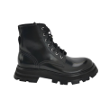 Ajoutez une touche d'originalité à votre look quotidien avec ces bottines noires classiques. Dotées d'une tige en cuir brillant, d'œillets argentés et d'une semelle crantée épaisse, ces bottines à lacets allient durabilité et style.