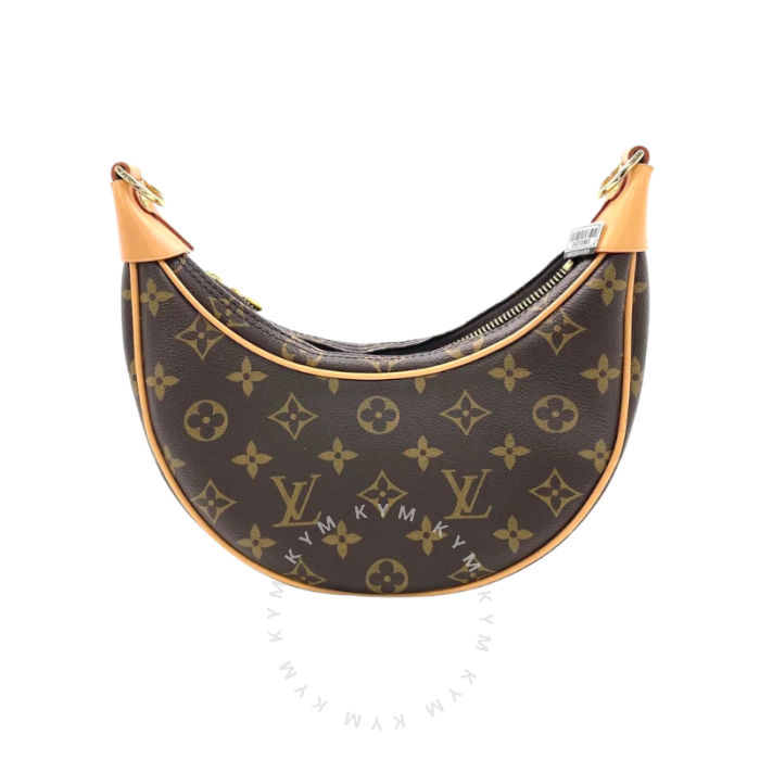 Elegant Louis Vuitton Loop handbag crafted in brown Monogram canvas with natural leather trim and gold-tone hardware. Features a top zip closure and a curved silhouette, with an adjustable shoulder strap allowing the bag to be worn on the shoulder or across the body. A compact yet statement-making design, ideal for daily wear. Strap included.